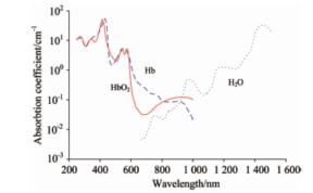 光谱检测方法以其方便、无痛无创以及原理上高速、高精度、信息多维化等优点成为有应用前景的方法。在近红外光谱血液成分无创测量中,目前只有血氧的监测在临床上得到普遍应用。对血氧的监测在手术麻醉、医疗监护和运动、睡眠过程的研究中具有非常重要的作用。国内外学者对血氧检测进行了大量的研究,并有多种商业化的血氧监测产品。血氧饱和度光谱测量中,通常选取特定的两个波长进行计算,得到血氧饱和度系数这个中间值,通过经验公式或拟合方法,计算出血氧饱和度的值。