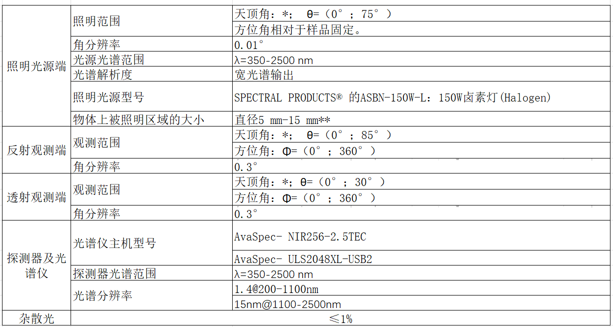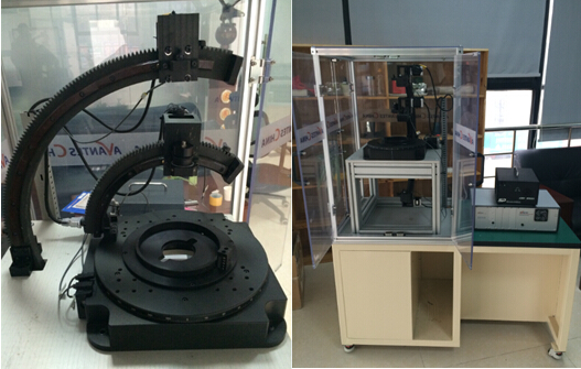 双向反射分布函数(Bidirectional Reflectance Distribution Function)表示了不同入射角条件下物体表面在任意观测角的反射特性,对于研究物质、材料的基础物理特性和应用前景有着重要的意义。但是这一分布函数的测量存在着角度定位精度要求高,测量点多,测试数据量大的难点,单纯由手动操作难以完成。荷兰Avantes公司研发了双向反射分布函数测量系统,集成大功率卤钨灯照明系统、双通道光纤光谱仪探测系统、测量机械系统和控制系统。