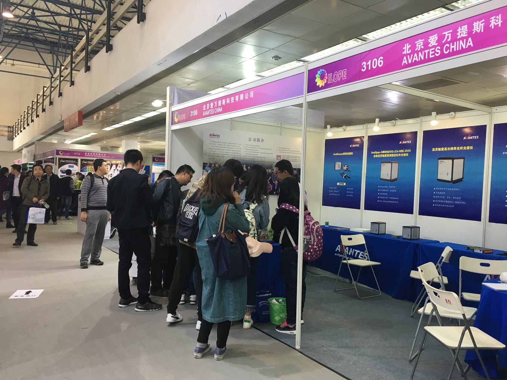 2017年10月11日-13日Avantes China参加了在北京举办的第22届ILOPE展会,展出了科研级高灵敏度高分辨率光谱仪AvaSpec-Hero、可用于手持式设备的袖珍型光谱仪AvaSpec-Mini、采用USB3平台和CMOS探测器的AvaSpec-2048CL-EVO型光谱仪、高灵敏度近红外光谱仪AvaSpec-NIR1.7/2.5等新产品,同时也展出了可用于LIBS和等离子体测量的传统优势产品——多通道光谱仪。